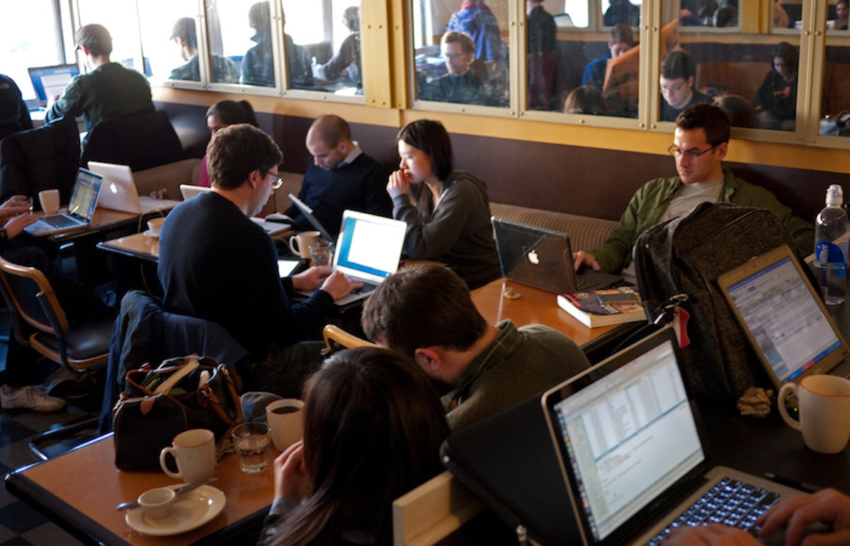 I went into Pushcart, a coffee shop I frequent that is half a block from my place, to do a bit of work. It was abnormally packed and all the tables were taken. There were a couple of dudes hanging out at the bar, but besides that, it was just me. I was looking for a table to ensure I had a seat prior to placing my order.As soon as I noticed a woman put her right arm into her purple quilted puffer coat, I jumped at the opportunity and asked if she was leaving and if I may have her table. She nodded in agreement.